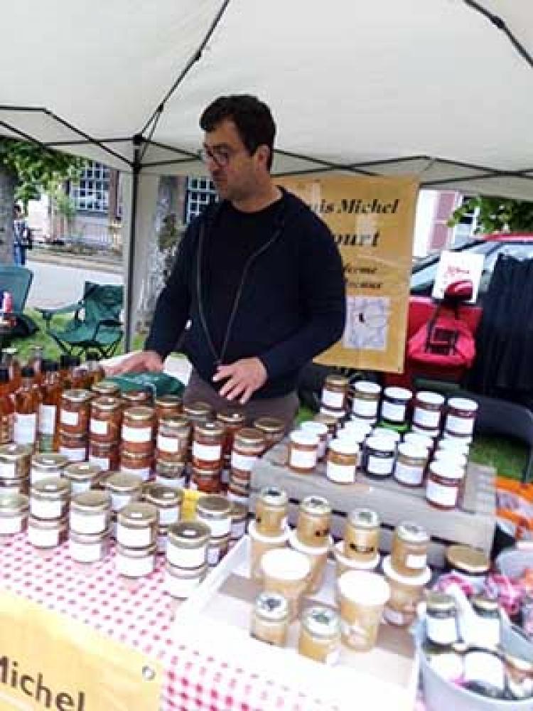 Michel Louis assure la vente de miel artisanal élaboré au sein de son exploitation agricole à Pierrecourt (Blangy-sur-Bresle) près d'Aumale, Neufchâtel-en-Bray, Abbeville, Le Tréport et Dieppe en Seine-Maritime (76).